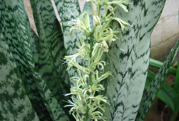 葉簇生,劍葉剛直立,葉全緣,表面乳白、淡黃、深綠相間,呈橫帶斑紋。常見(jiàn)的家庭盆栽品種,耐干旱,喜陽(yáng)光溫暖,也耐陰,忌水澇??晌帐覂?nèi)80%以上的有害氣體,吸收甲醛的能力超強(qiáng)。