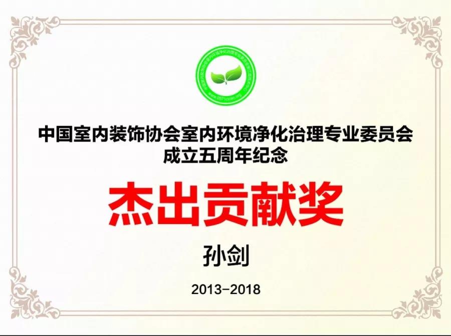 2018年12月19日,中國室內(nèi)環(huán)境凈化治理行業(yè)第五屆技術(shù)創(chuàng)新分享會在北京新聞大廈長安發(fā)布廳舉行。創(chuàng)綠家環(huán)??偛脤O劍榮獲凈化委成立5周年杰出貢獻(xiàn)獎和青年菁英獎。