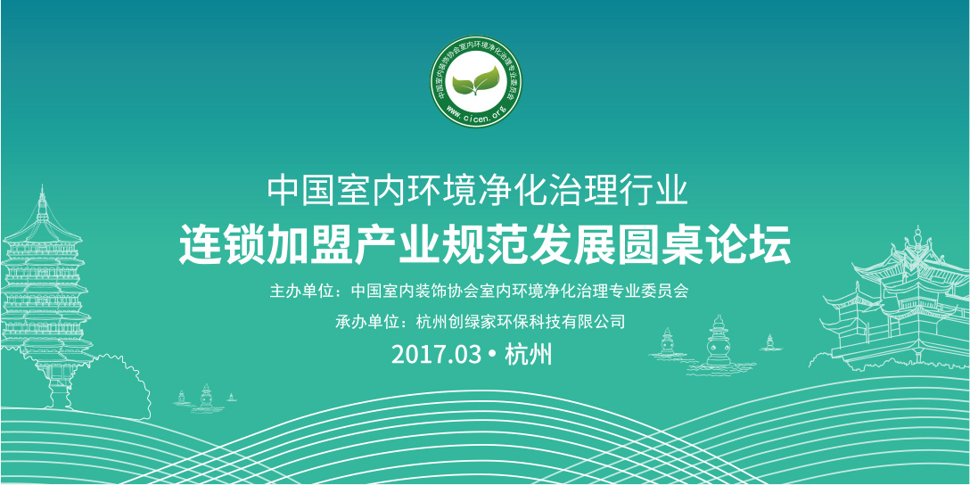 2017年3月15日,由中國凈化委主辦、杭州創(chuàng)綠家環(huán)保科技有限公司承辦的“中國室內環(huán)境凈化行業(yè)連鎖加盟產業(yè)可持續(xù)發(fā)展圓桌論壇”會議在杭州圓滿落幕。本次會議在美麗的錢塘江畔,錢江新城CBD封面建筑即創(chuàng)綠家環(huán)??偛克诘刭澇芍行恼匍_,室內環(huán)境凈化行業(yè)領軍人物齊聚杭州,共商行業(yè)大計。此次會議中國凈化委針對室內環(huán)境凈化治理連鎖加盟產業(yè)商議出臺一系行業(yè)列行規(guī)行約。
